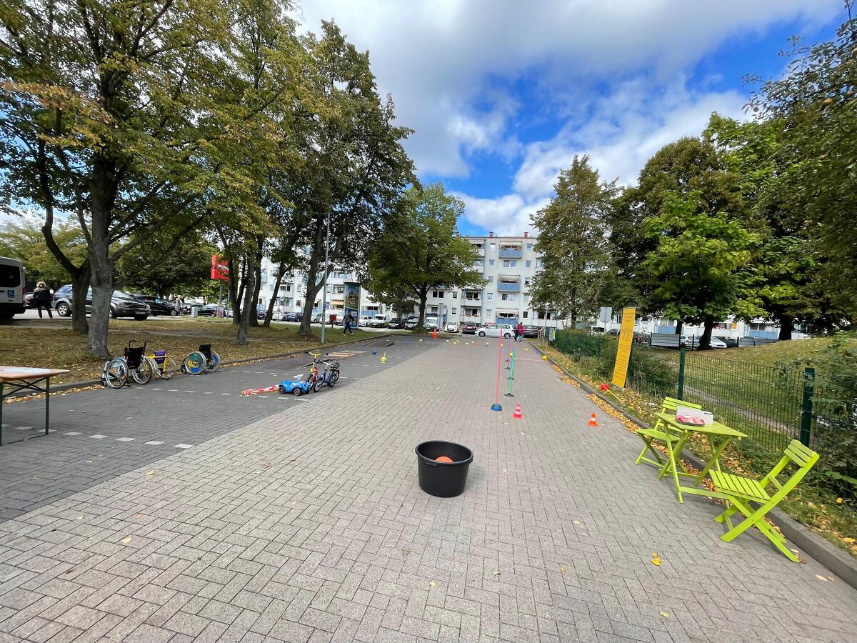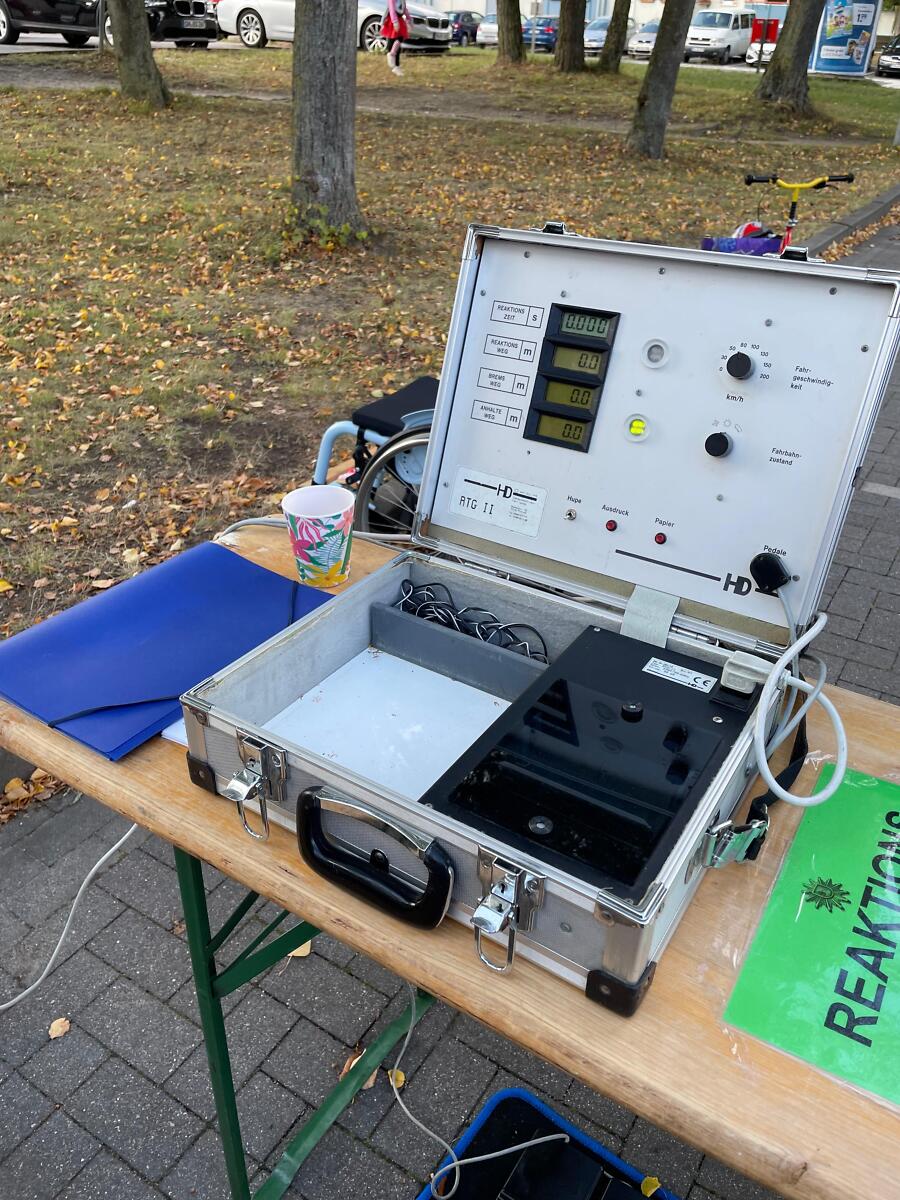 Gleichzeitig unterstützten wir die Schweriner Verkehrswacht bei ihrer ehrenamtlichen Tätigkeit. Neben einem Rauschbrillenparcour und einem Reaktionstestgerät wurden Roller und Laufrad für einen Hindernisparcour zur Verfügung gestellt.